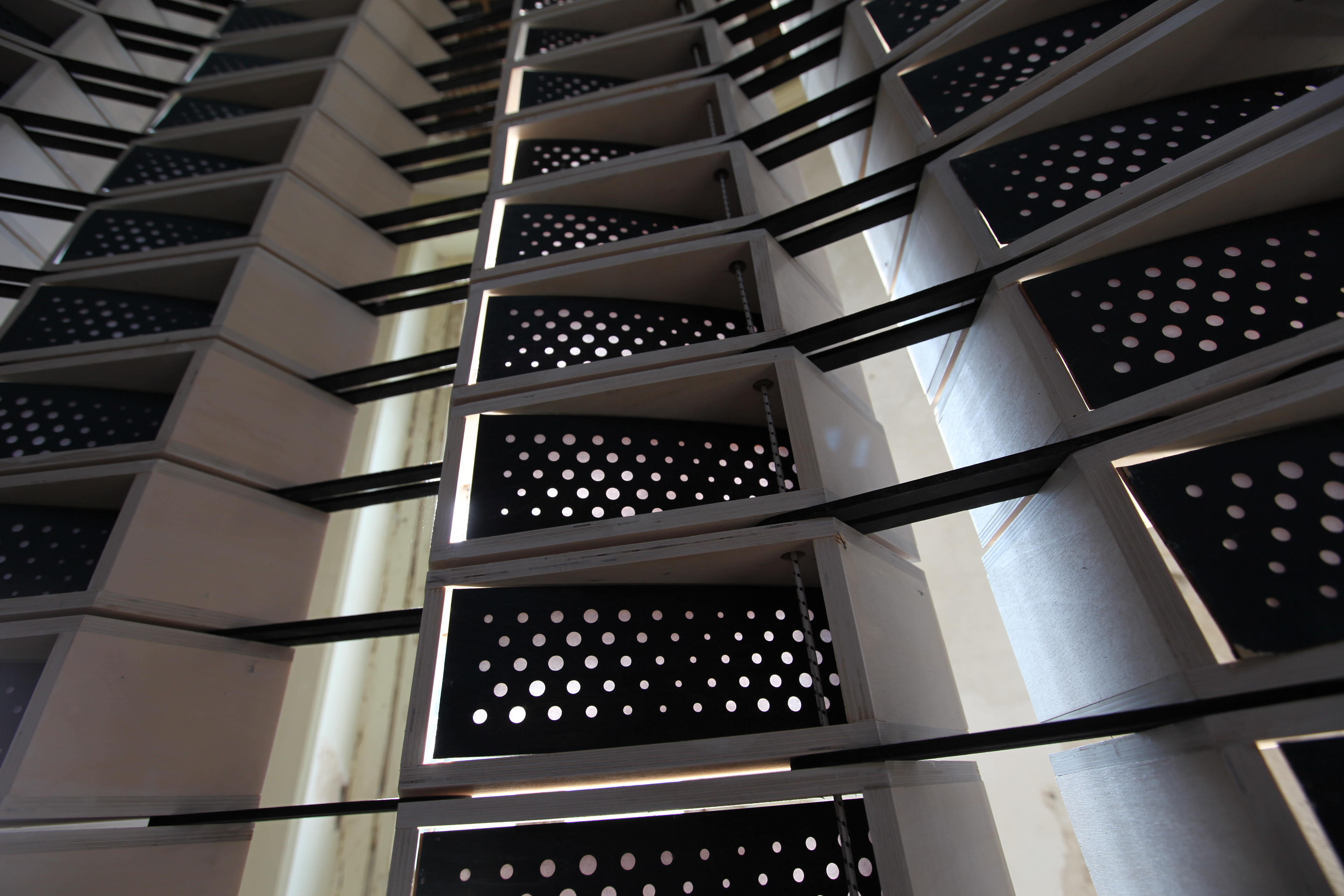 Shock cord attaching the modules with plywood connectors ensuring operability of the system