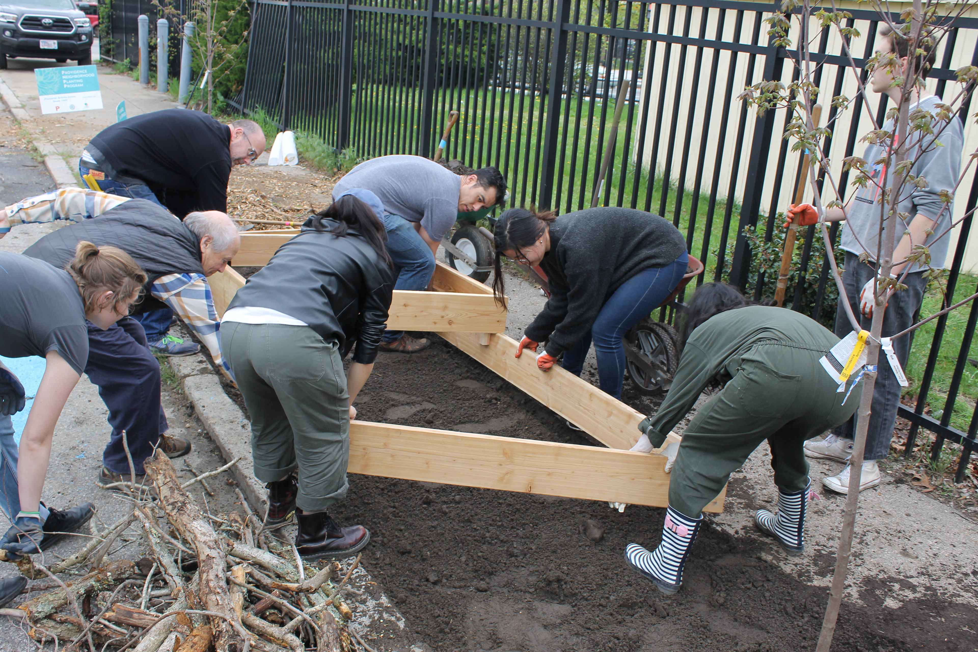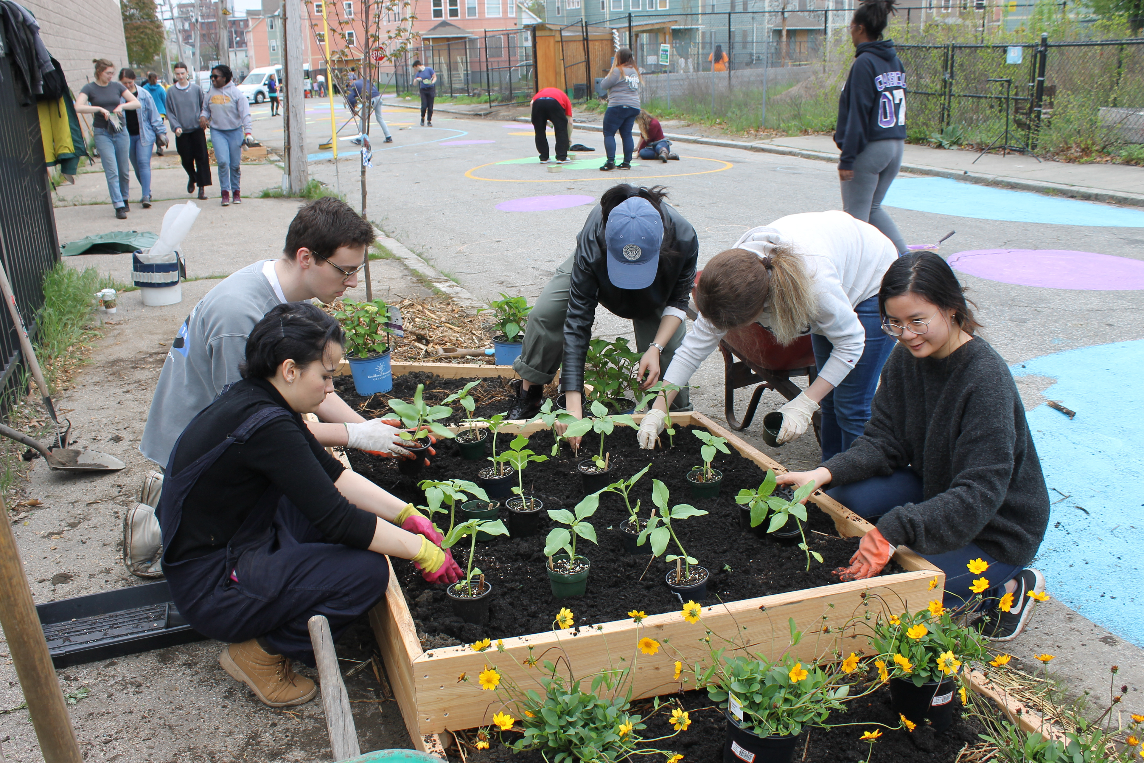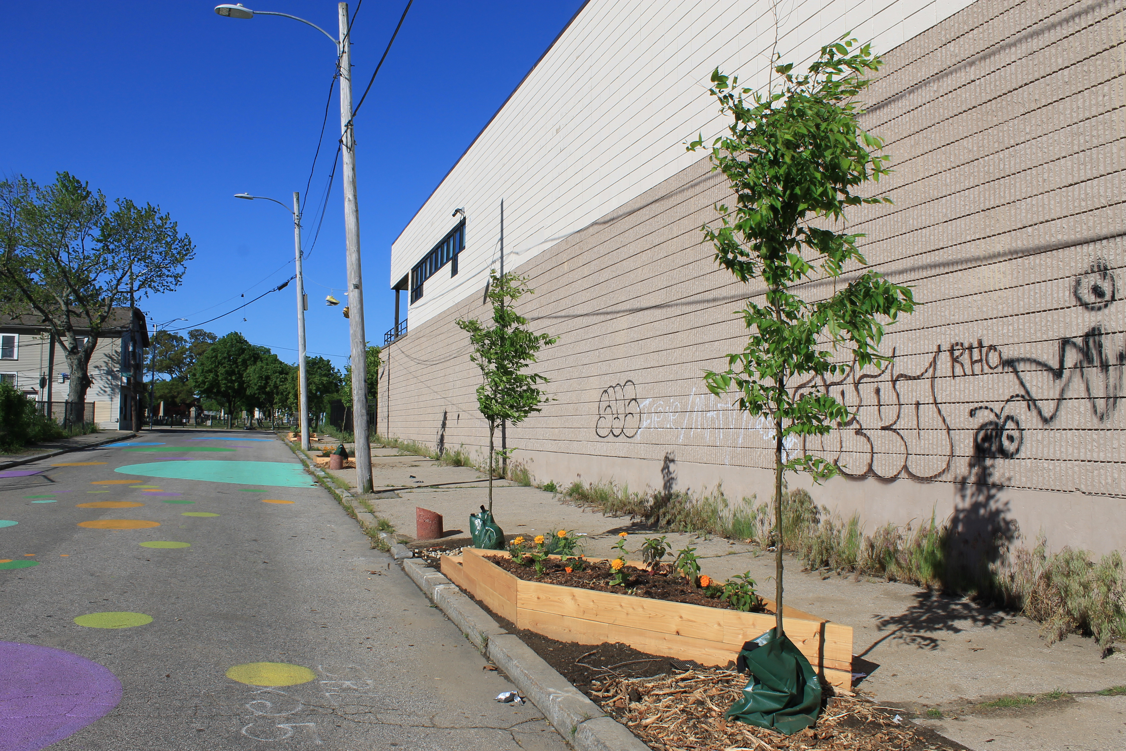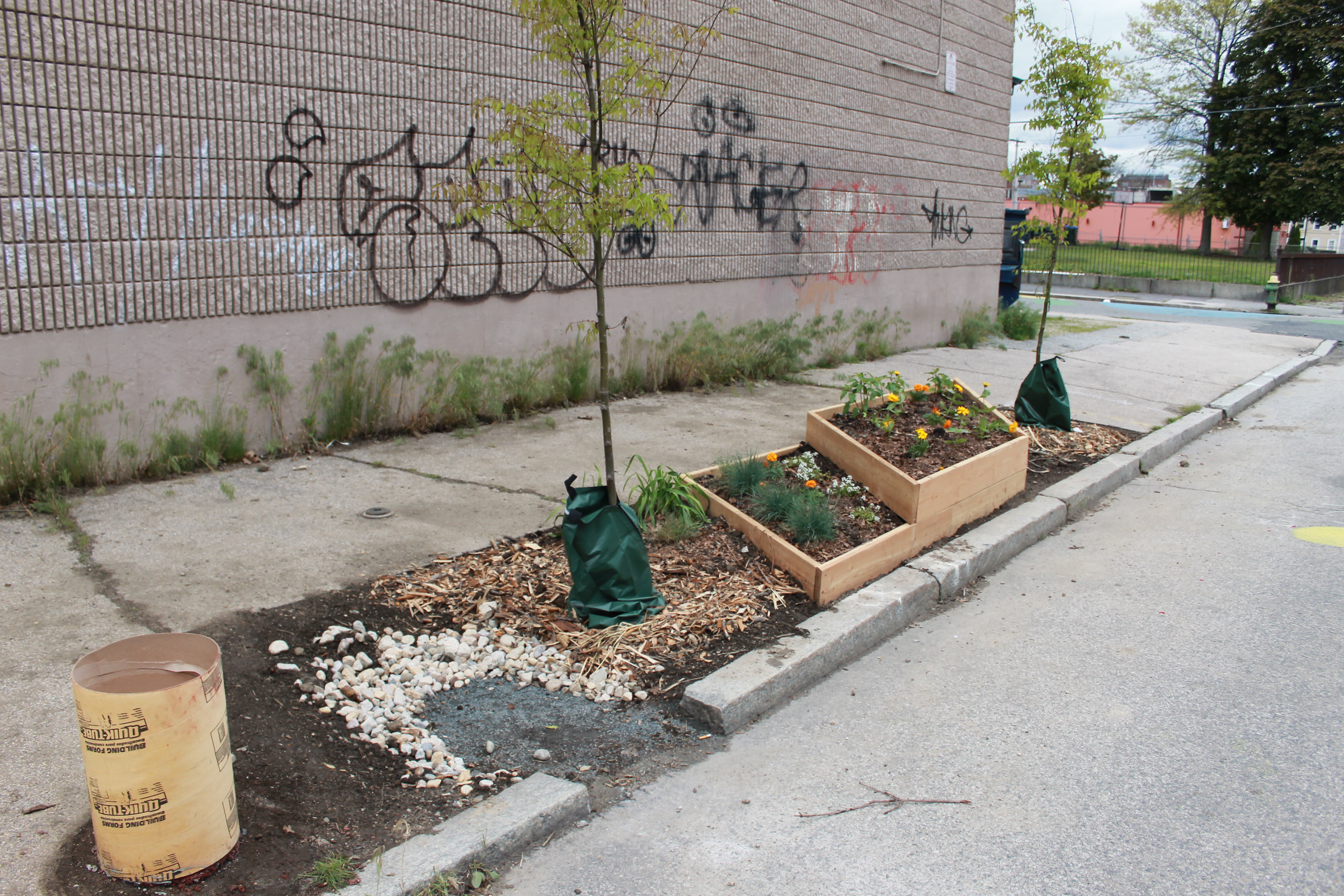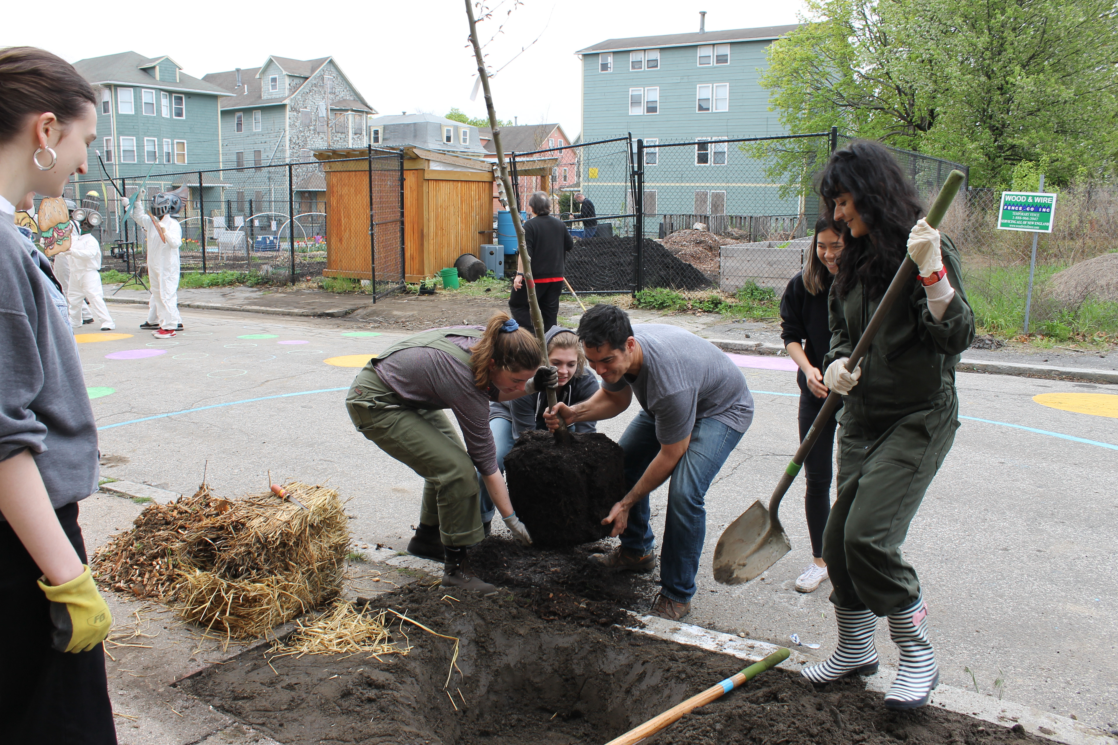 The project was developed in cooperation with Southside Community Land Trust, the Southside Community Land Trust Youth Group and Trinity Square Together, as well as other organizations and individuals that are stakeholders in the greenery management and public space management of the neighborhood. The members of Urban Farm: Gathering held workshops and meetings with all those who work in the area to design a sidewalk garden that would beautify Hayward street whilst simultaneously promoting the importance of urban farming as a contemporary practice. The planters designed by the Urban Farm: Gathering group were fabricated at RISD and subsequently installed on site during Care for the Square. Care for the Square is Trinity Square Together’s bi-annual event where South Providence community members and volunteers can take part in a day of beautifying the Trinity Square area. The Spring edition of the event included the planting of 14 street trees donated by Providence Neighborhood Planting Program (PNPP), building a sidewalk garden on Hayward Street, cleaning-up and raising headstones in Grace cemetery, and two public art installations being spearheaded by The Avenue Concept.